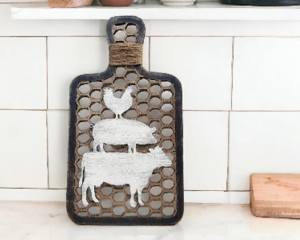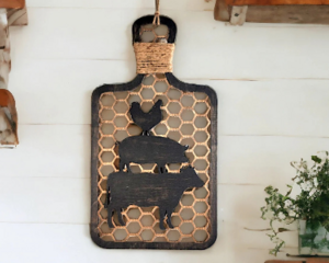 Farmhouse Decorative Cutting Board: Rustic Stacked Animals Wo...