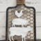The decorative cutting board is laser cut from birch or maple wood . I then paint the board edges black and distress the painted area giving that worn over time look. The entire board is then stained. The stacked animals are cut from a thinner wood that I have hand painted, sanded and attached to give the 3D or raised look. Final step is to wrap the handle in jute and add the hanger.